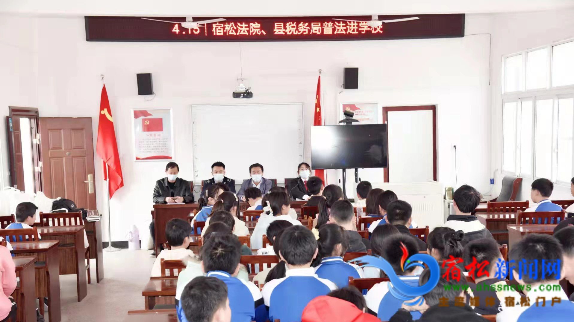 當天上午,宿松法院和宿松縣稅務局的普法志愿者們來到程營初級中學開展“法治護航·青春飛揚”送法進校園活動,通過真實案例穿插和互動小環節,向學生們詳細講解了法律的概念、與未成年人息息相關的法律,讓憲法、民法典、未成年人保護法等抽象的法律規定成為青少年腦海中鮮活的映像。