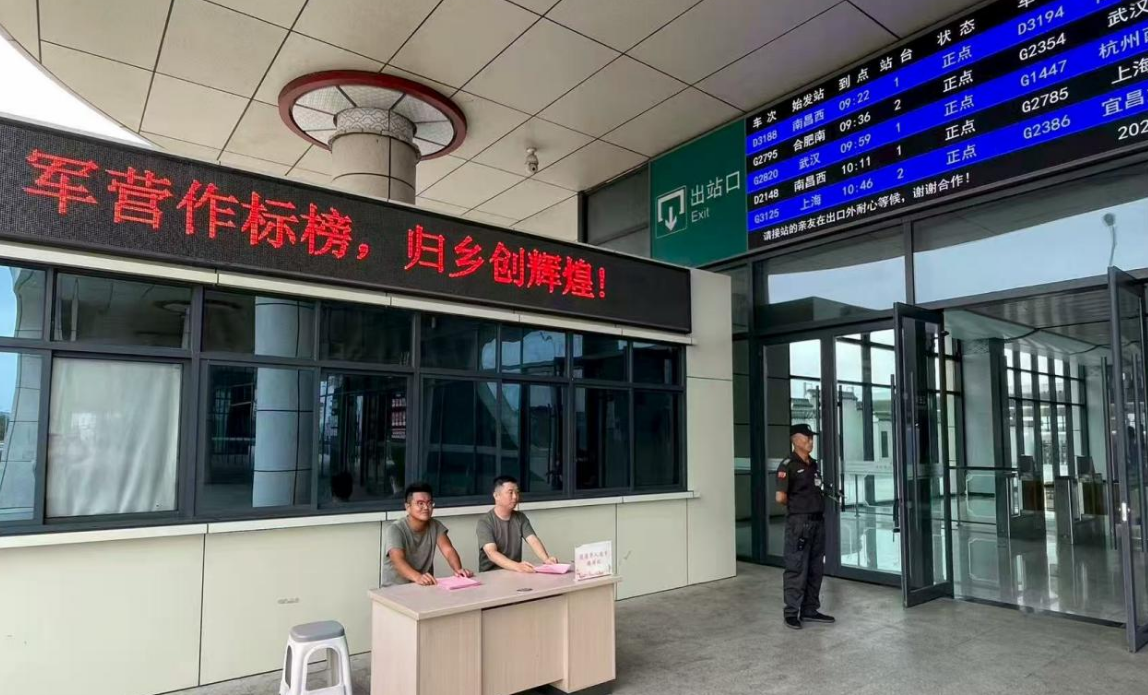 榮光滿城,鋪就尊崇返鄉(xiāng)“暖心路”?!盁崃覛g迎退役士兵光榮返鄉(xiāng)!”9月1日,宿松東站內(nèi),身披綬帶的退役士兵剛出站臺,映入眼簾的就是“雙擁號”公交專線,引得旅客駐足致敬。據(jù)統(tǒng)計,專線累計接送退役士兵110余人次,“橄欖綠”與“志愿紅”交相輝映的畫面,成為初秋宿松最動人的風景。