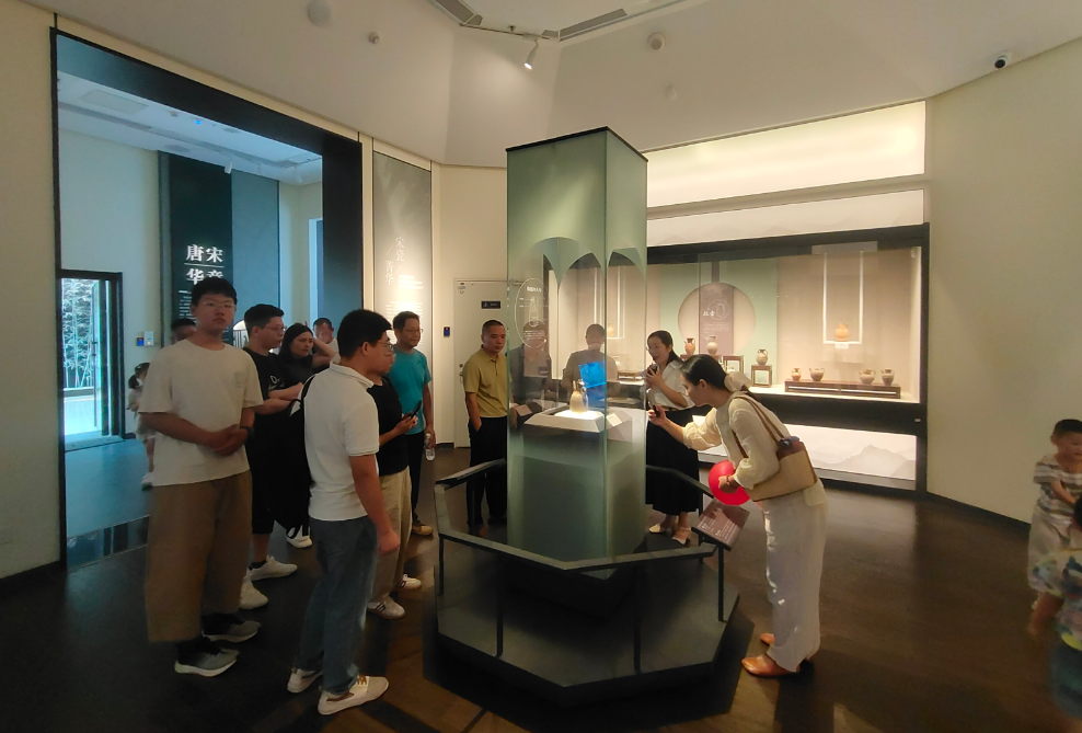 在講解員的娓娓講述中,尋訪團成員依次步入“宿松文明史陳列展”“山水豐碑·紅色革命展”“華彩戲韻·廣德市博物館館藏彩墨戲曲藝術展”等主題展廳。從新石器時代的粗樸陶石器,到漢代原始瓷的溫潤肌理;從宋代青白瓷的清雅風骨,到明清青花瓷的繁麗紋樣,一件件文物如同時光的信使,將皖西南大地千年的文明演進徐徐鋪展。