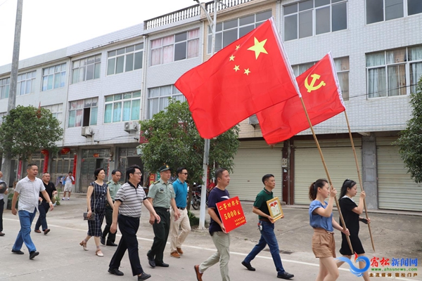 融媒體訊 8月7日上午9時許,隘口鄉隘口村興鎮路至九井大道上,彩旗飄飄、鑼鼓喧天、鞭炮齊鳴、熱鬧非凡,人們紛紛側目觀望,長長的隊伍中,工作人員端著的一塊二等功獲獎證書的匾額格外引人注目,縣人武部、退役軍人事務局在隘口鄉黨政負責人陪同下,正興致勃勃往該鄉二等功獲得者齊建偉家中走去。