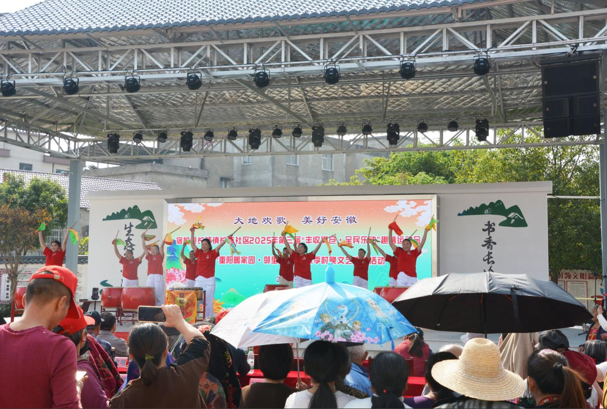 活動在激昂的鑼鼓聲中拉開帷幕。長鋪馥郁鼓舞隊帶來的開場表演《豐收》,鼓點鏗鏘、氣勢恢宏,瞬間點燃了現場氣氛,為節日增添了濃濃的喜慶氛圍。隨后,農民趣味運動會熱鬧開賽,居民踴躍參與,老少同樂,現場歡聲笑語不斷,不僅鍛煉了身體,更增進了鄰里情誼。