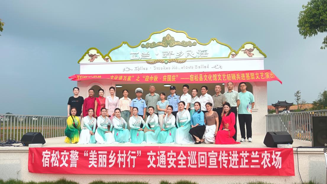 宿松融媒訊 9月29日下午,由縣文旅體局、佐壩鄉(xiāng)人民政府聯(lián)合主辦,縣文化館、佐壩鄉(xiāng)綜合文化站共同承辦的“迎中秋·慶國慶”文藝輕騎兵進基層演出活動,在佐壩鄉(xiāng)芷蘭農(nóng)場熱鬧開演,將精彩的文化演出與實用的交通安全教育有機融合,讓群眾在享受文化盛宴的同時,筑牢交通安全防線。