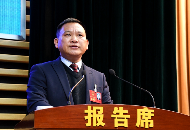 在熱烈的掌聲中,縣長曹曉革代表縣人民政府向大會作《政府工作報告》。報告共分為三個部分:一、2021年及本屆政府工作回顧;二、今后五年的奮斗目標和主要任務;三、2022年重點工作安排。