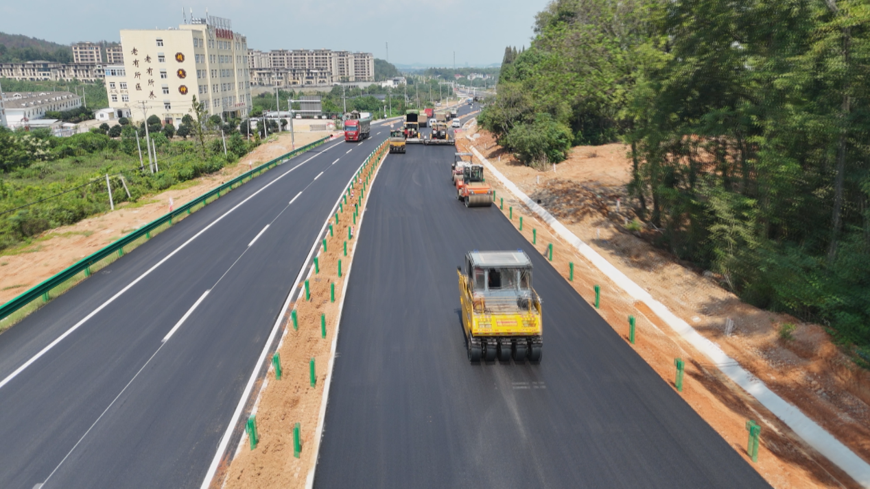 105國道破涼至湖北交界段改建工程瀝青攤鋪完成預計9月底通車